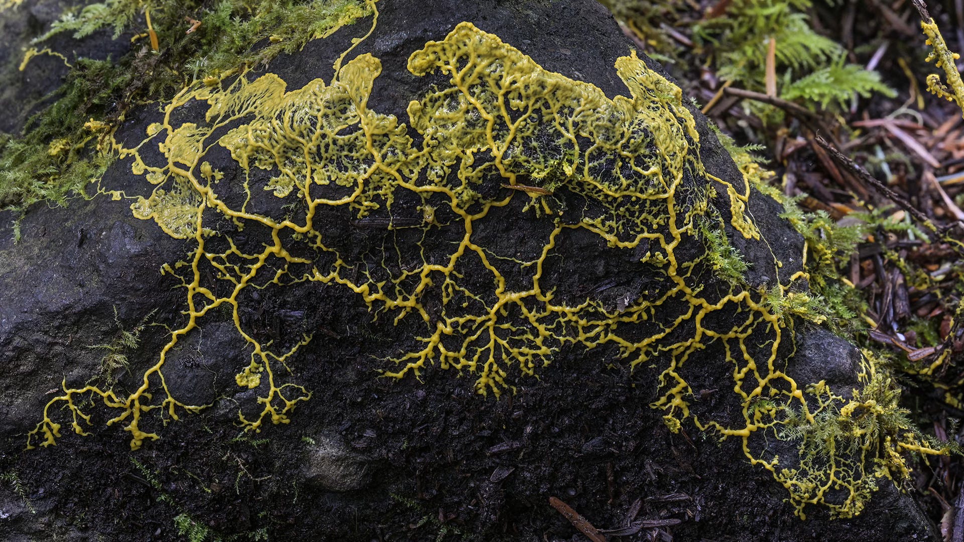 As the title of the conference suggests, it was a meeting of minds around recent discoveries in plant and fungi research. Evidence of problem-solving, memory, kin recognition, and other surprising behaviors set the stage for both intrigue and debate. Elizabeth recalls a session on the Boquila plant with a brilliant capacity to mimic nearby plants to evade herbivores. Merlin tells about a slime mold that could find its way out of an IKEA faster than we can. It has no brain or legs; it’s just a yellow blob that pulsates along the shortest path through mazes. Zoë shares news about fern sperm that swims through rainwater to procreate, unless a rival fern deliberately releases a killer chemical to sabotage the tryst.